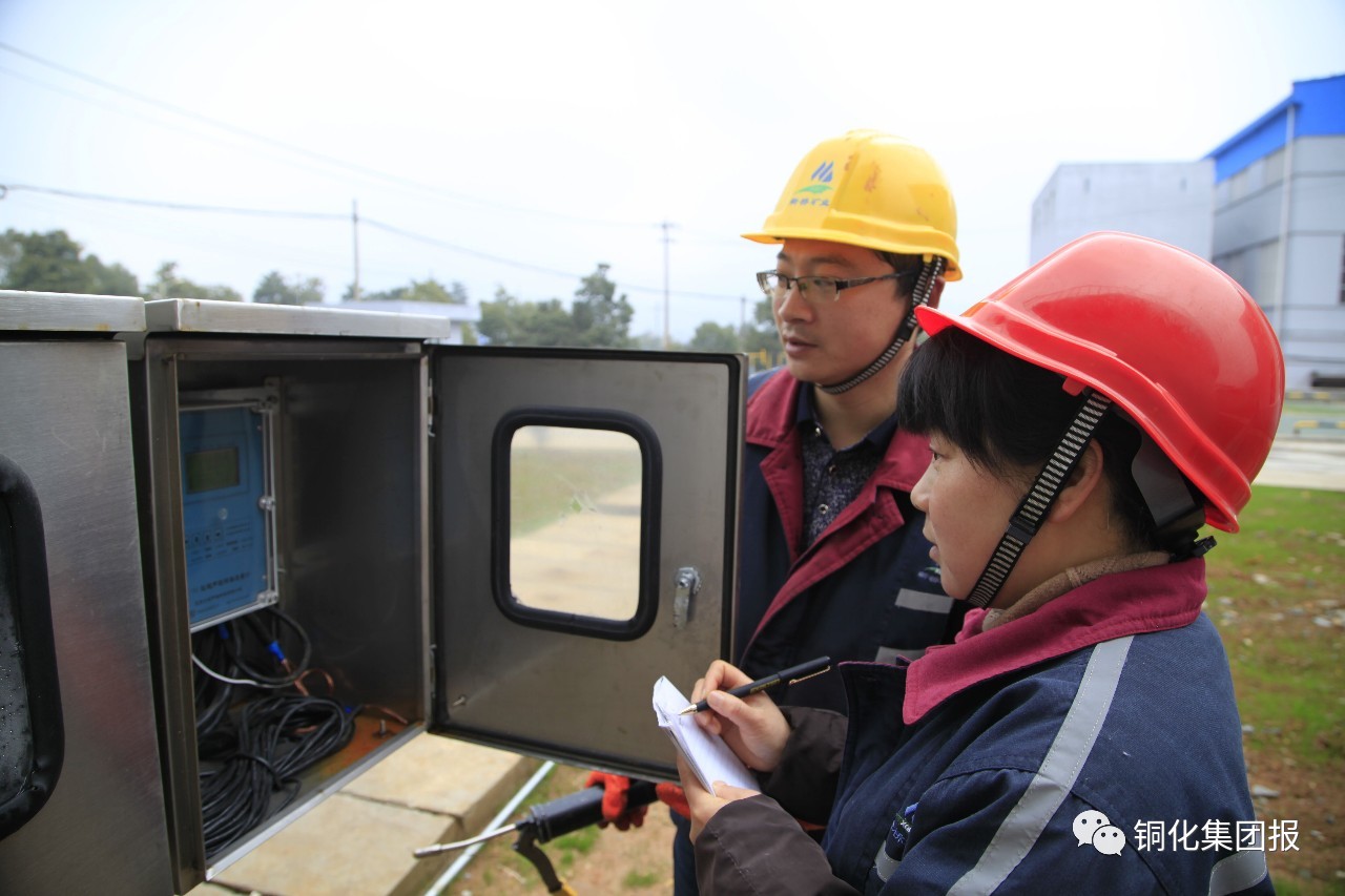 / 近日,fun88乐天堂矿业公司技改扩建后的污水处理新系统明渠流量计柜前,两名员工正在观察记录外排水流量。