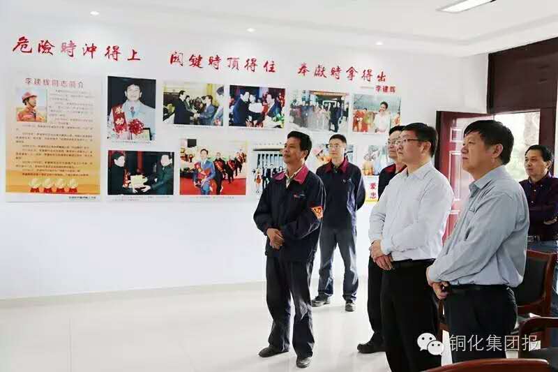 吴劲指出,面对当前经济下行压力带来的各种困难,要以市场为导向,抢抓发展机遇,增强发展信心,积极调整产品结构,加快转型升级,推动科技创新和产品研发,增强企业核心竞争力,努力开创企业发展新局面。吴劲还称赞集团公司党建工作做得好。图为吴劲在党的十八大代表、市委委员李建辉劳模创新工作室参观。(记者)