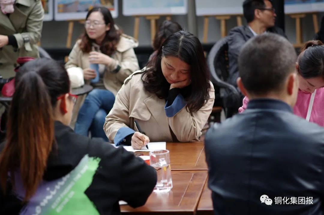 “好香啊,真是神仙处所!”“脑洞够大呀,在这儿培训也是享受!”一进门,通讯员们便被书院典雅秋色和浓郁桂香所吸引,就连《铜陵日报》与《铜化集团》报的4位老师也忍不住赞叹:“花香伴书香,确是看书、学习的佳境!”几张小桌拼湊在院里的桂花树下,小方凳围坐一圈,培训班正式开课。没有电子屏,也没有刻意准备的课件,一缕花香,一杯清茶,抛开拘谨,“师生”促膝围坐,开启了“唠嗑”式培训。通讯员们把平时找新闻、写新闻过程中遇到的困惑、难事拿出来发问求解,4位编辑老师也结合多年采、写、编经验和现实所遇事例尽心为大家答疑解惑,通讯员们之间还结合自己见报之作分享了各自心得。