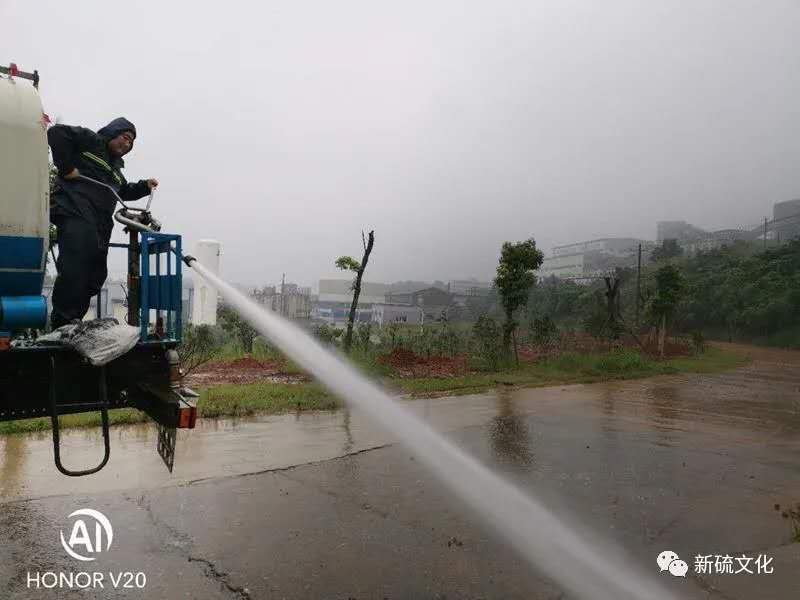 为此,保卫部每天多次,安排洒水车对路面进行清洁维护,保证路面整洁,车辆、人员出行安全便捷。